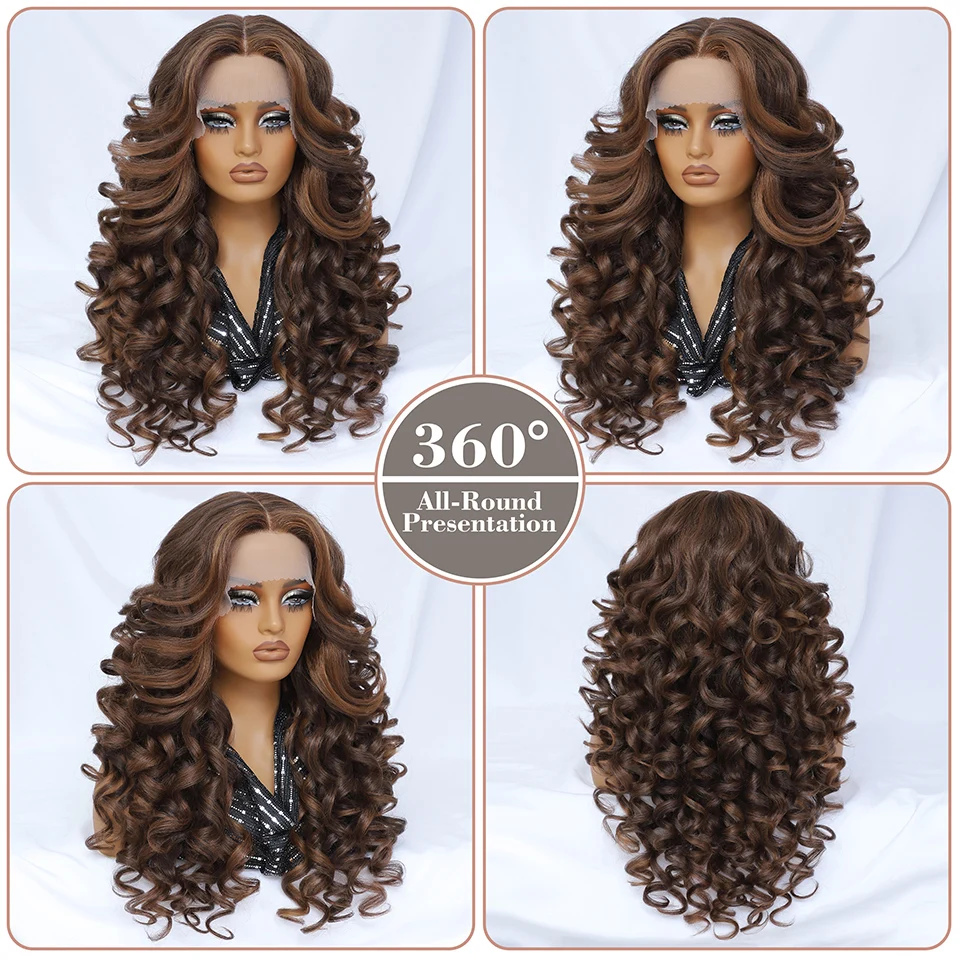 Lace Front Wigs 13X5X1 Latisha Synthetic HD Curly Pre Plucked Lace Front Wigs With Bangs For Afro Women Highlight With Baby Hair